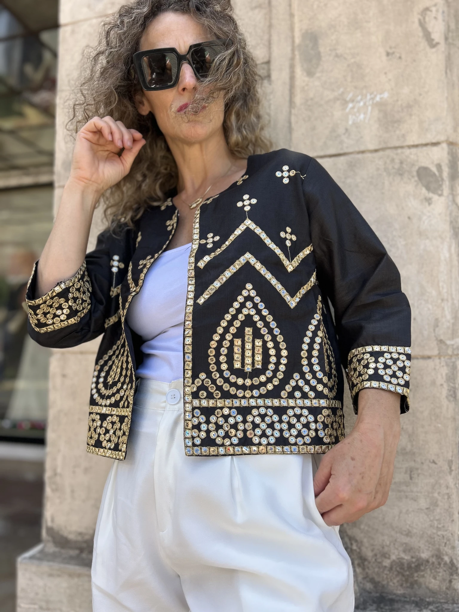 Chaquea Con detalles bordado en dorado.